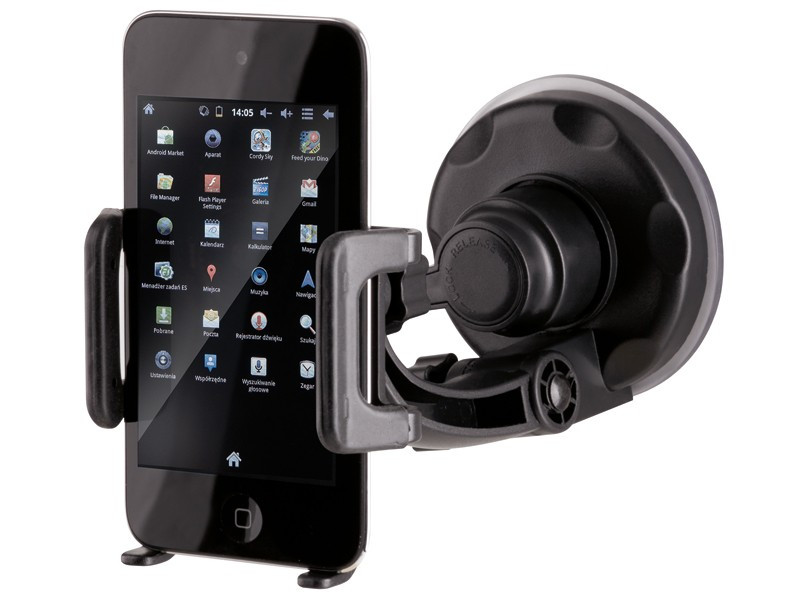 Uniwersalny uchwyt przeznaczony jest do montażu telefonu na szybie, posiada dodatkowy adapter na kierownice roweru.